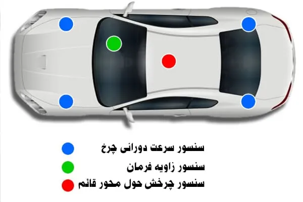 سیستم کنترل پایداری شامل سه نوع سنسور می باشد که هرکدام بنا به موقعیت قرارگیری نقش اساسی در حفظ تعادل خودرو برعهده دارند: